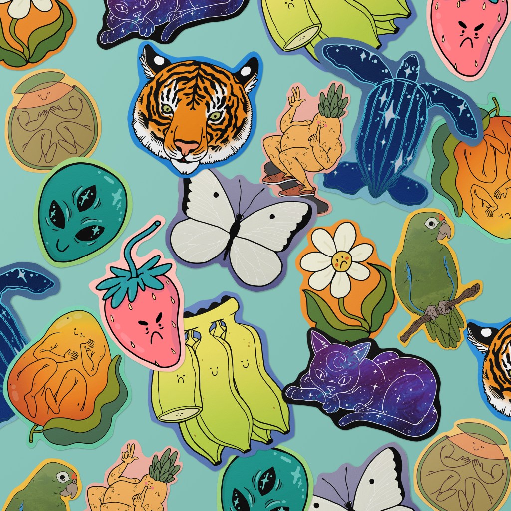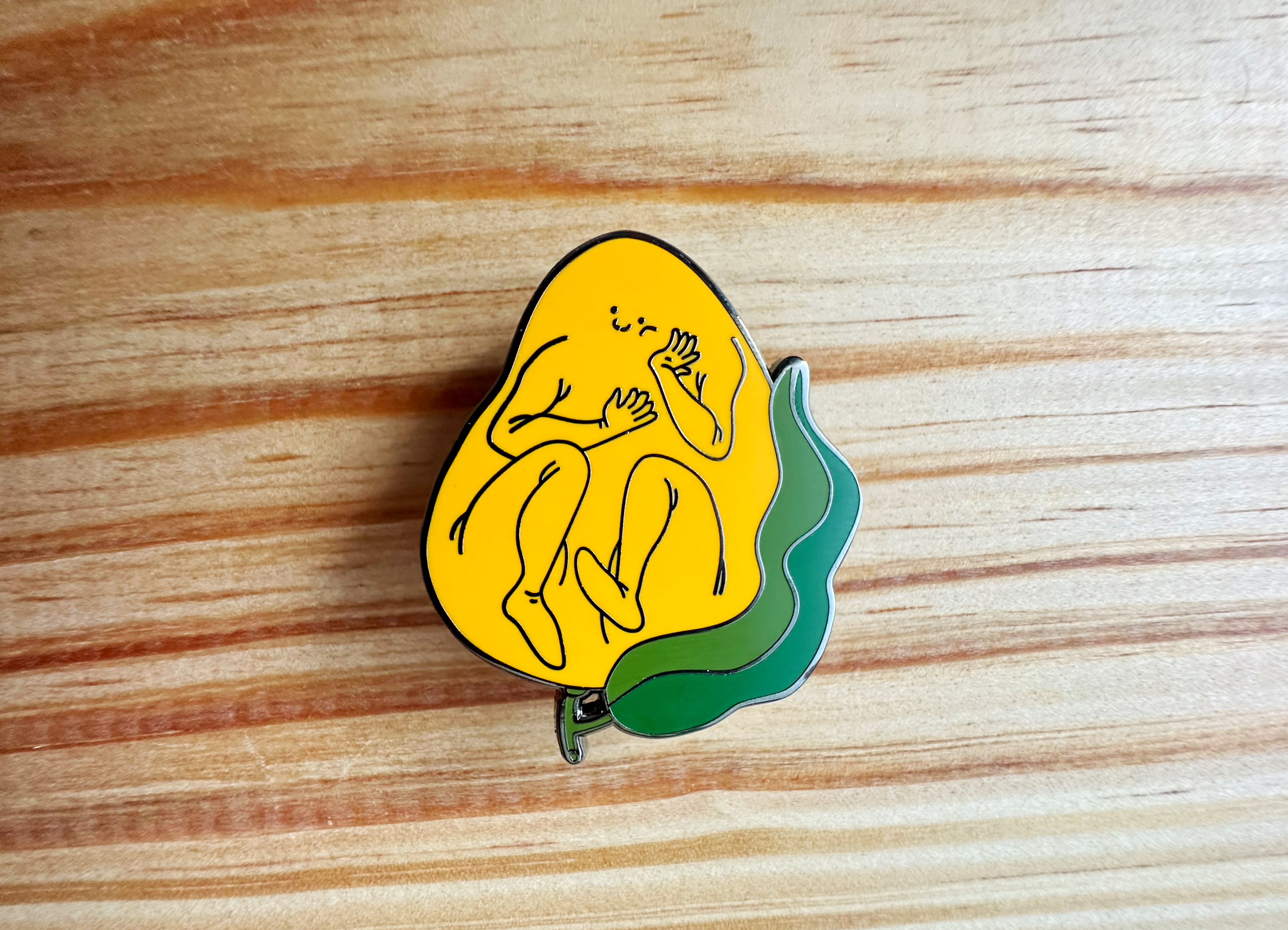 Below, late 2022, and early 2023 enamel pins; Ajicito dulce, Mango and Guineitos.