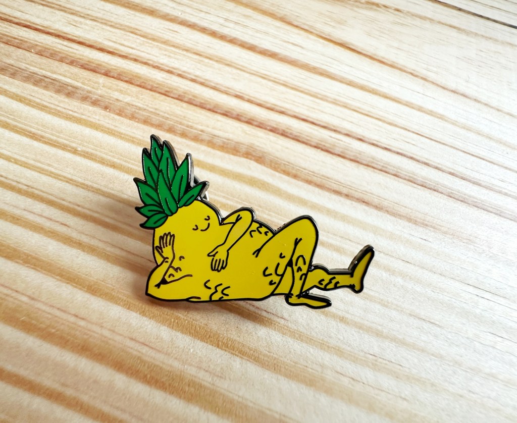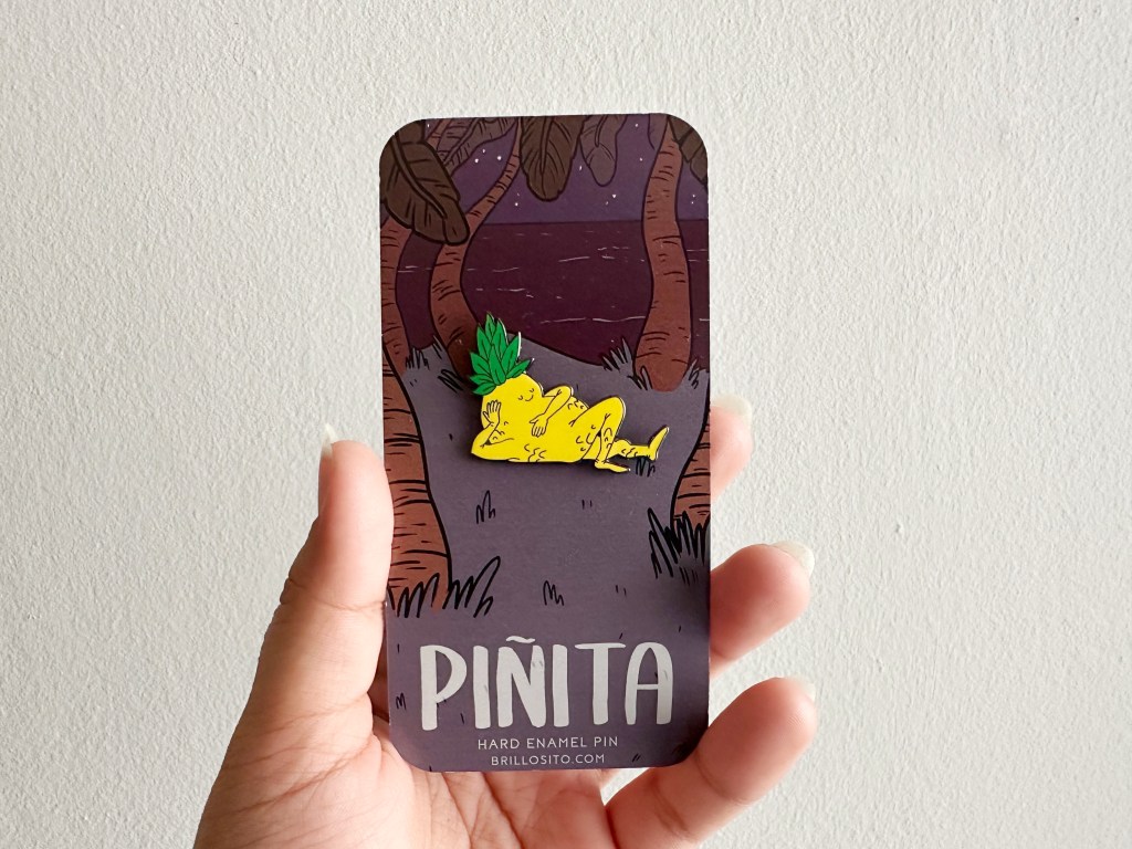 I have made 5 different pins since 2019. I take my time with the designs and wanted the first few to be a collection of fruits and vegetables relevant to me and those around me. My mom has pineapple plants in her home, everyone in the family has had guineitos niños on the kitchen counter at some point. Late summer afternoons were for filling bags with quenepas alongside my grandfather, ajies bring memories of the whole family making sofrito together and mangos remind me of all the times I climbed the mango tree, looking for the perfect mango.